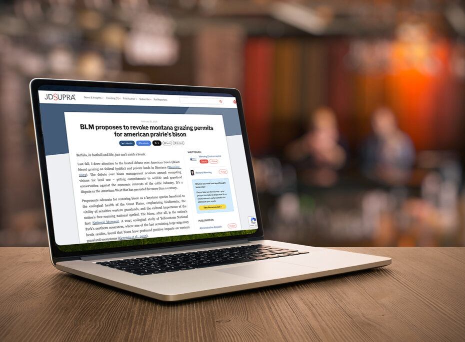 A month later, in January 2026, the BLM announced its proposed decision to revoke grazing permits on 63,000 acres of federal land in Montana held by the non-profit western conservation organization American Prairie to sustain its bison herd. The distinction between livestock and wildlife was BLM’s basis for its proposed decision, characterizing American Prairie’s bison herd as managed as wildlife, not for production. BLM’s decision reverses its own 2022 bison grazing authorization.